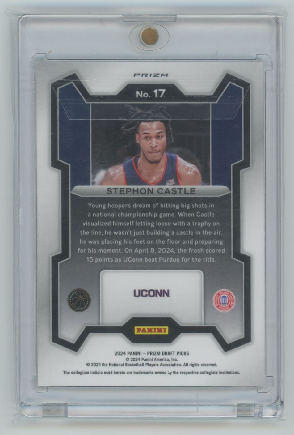 2024 Panini Prizm Draft Picks Silver Stephon Castle 17 rookie card from the San Antonio Spurs.