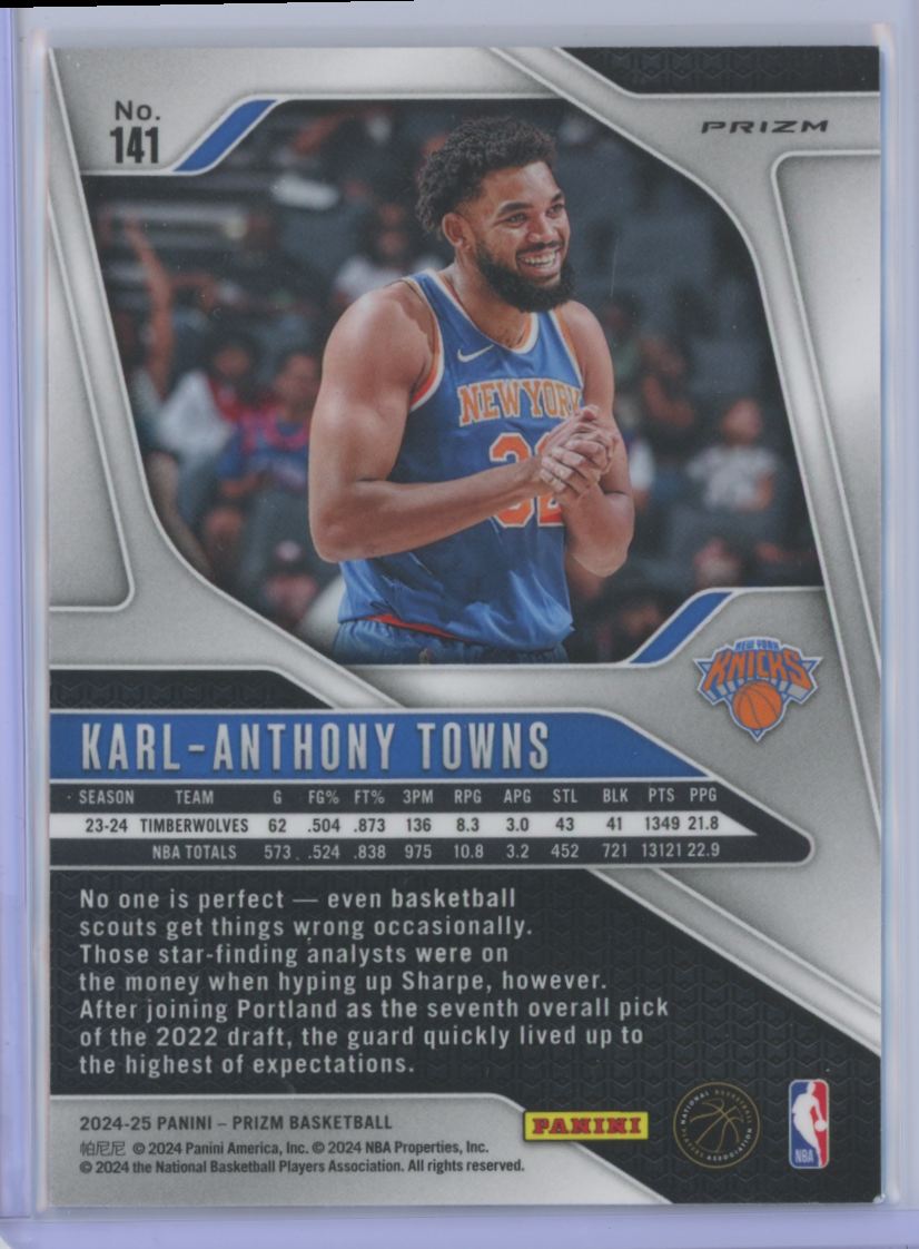 | Karl-Anthony Towns | New York Knicks | 141 | 2024 |