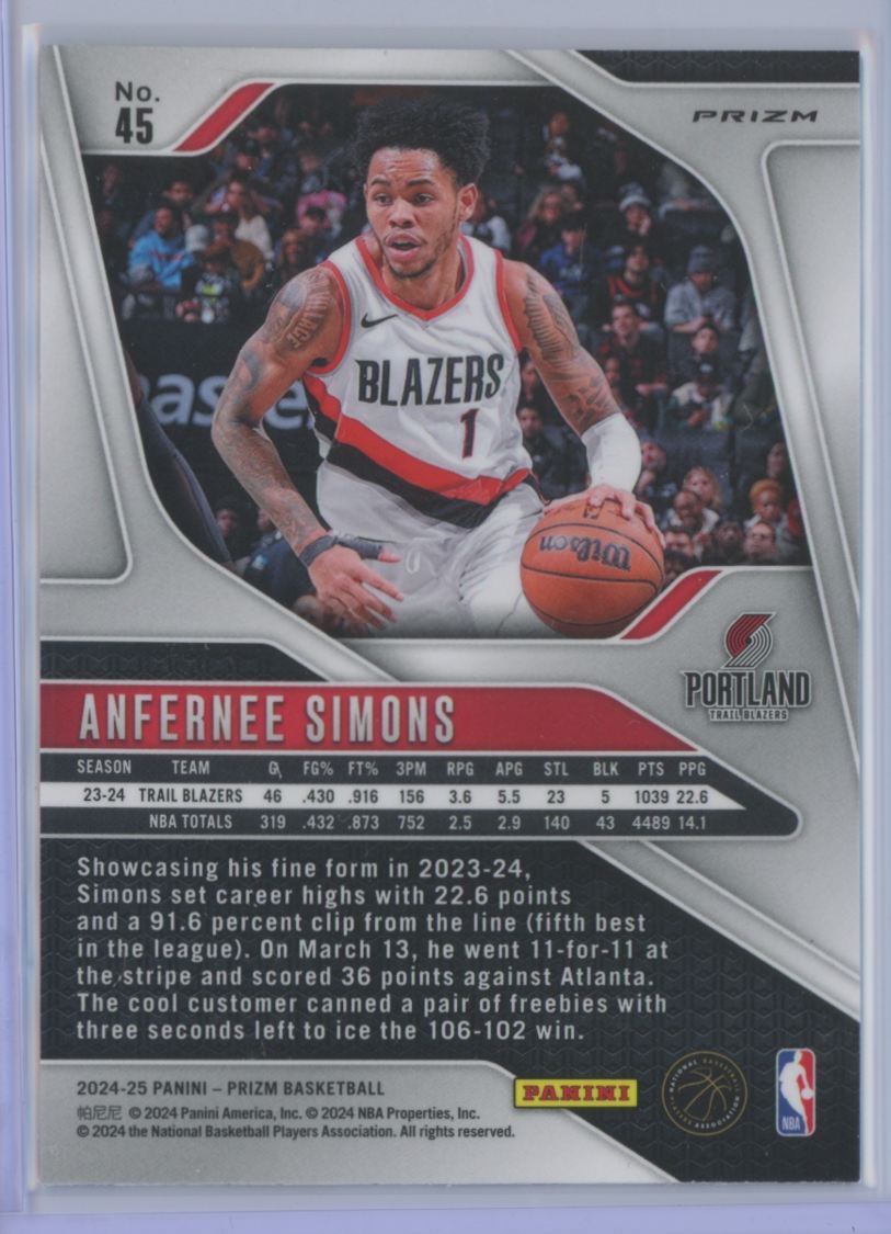 | Anfernee Simons | Portland Trailblazers | 45 | 2024 |