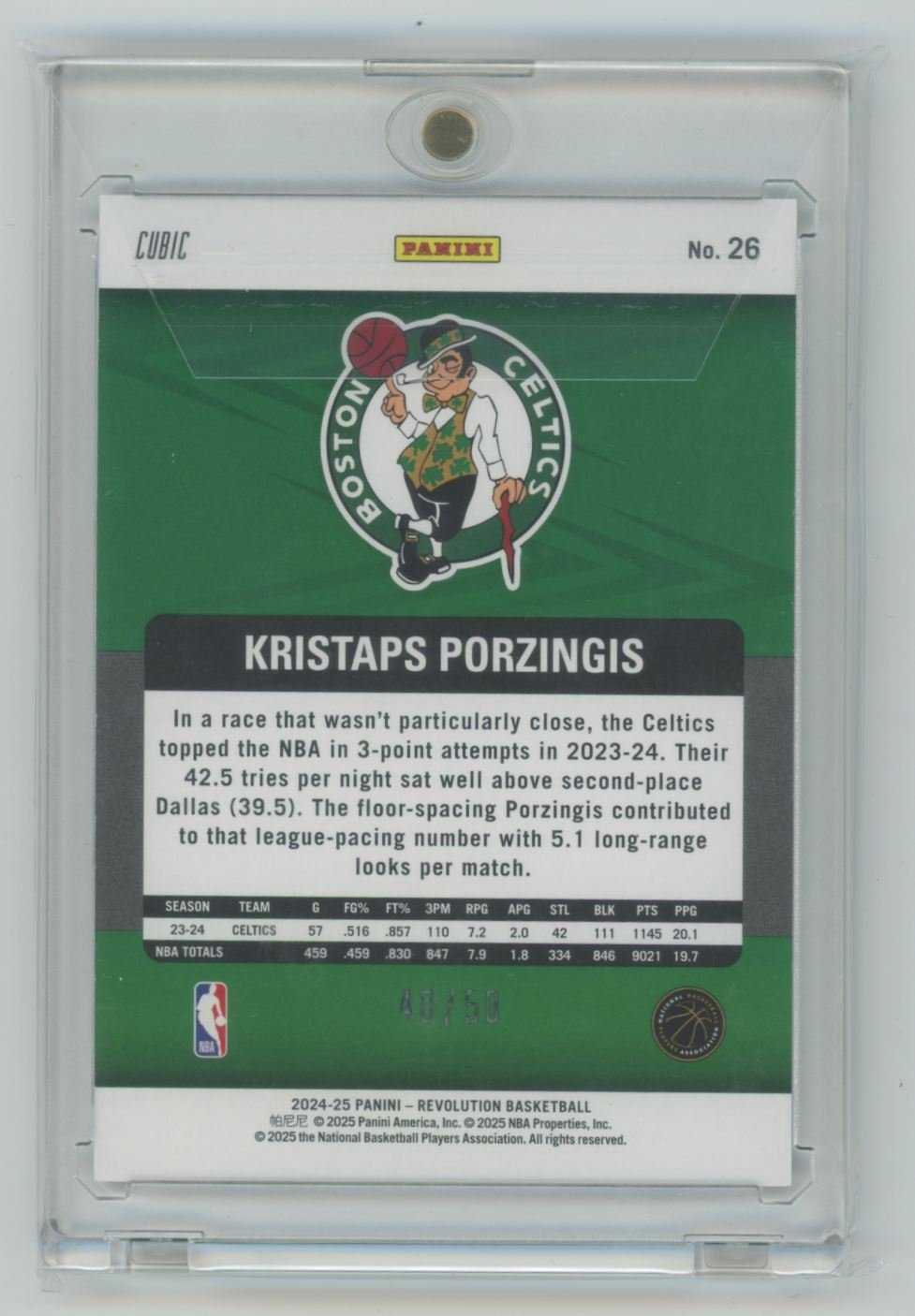 2024 Panini Revolution Cubic Kristaps Porzingis 26 40/50 card from the Boston Celtics.