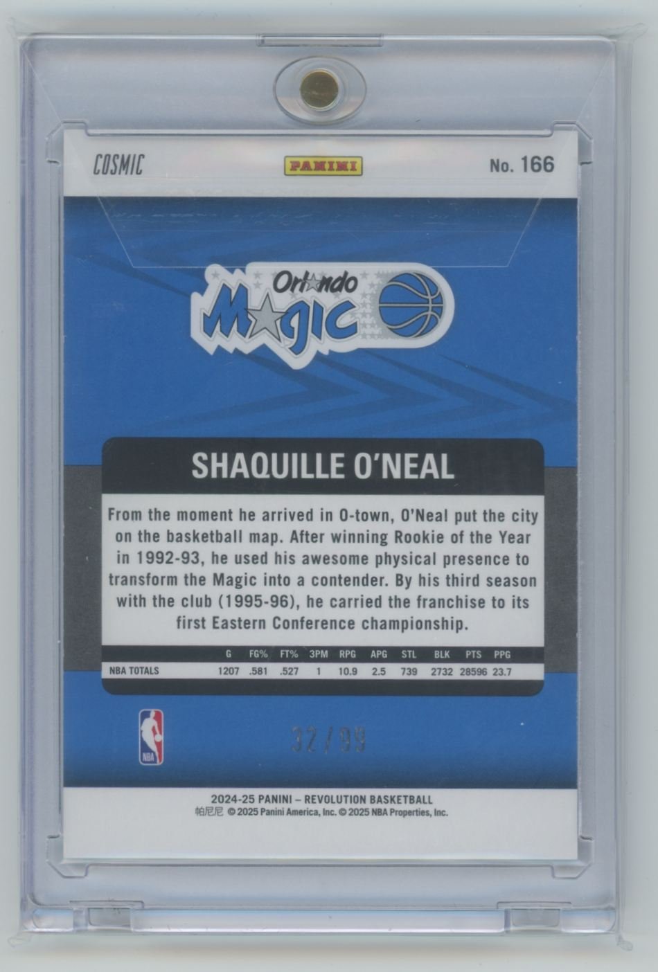 2024 Panini Revolution Legends Cosmic Shaquille O’Neal 166 32/99 card from the Orlando Magic.