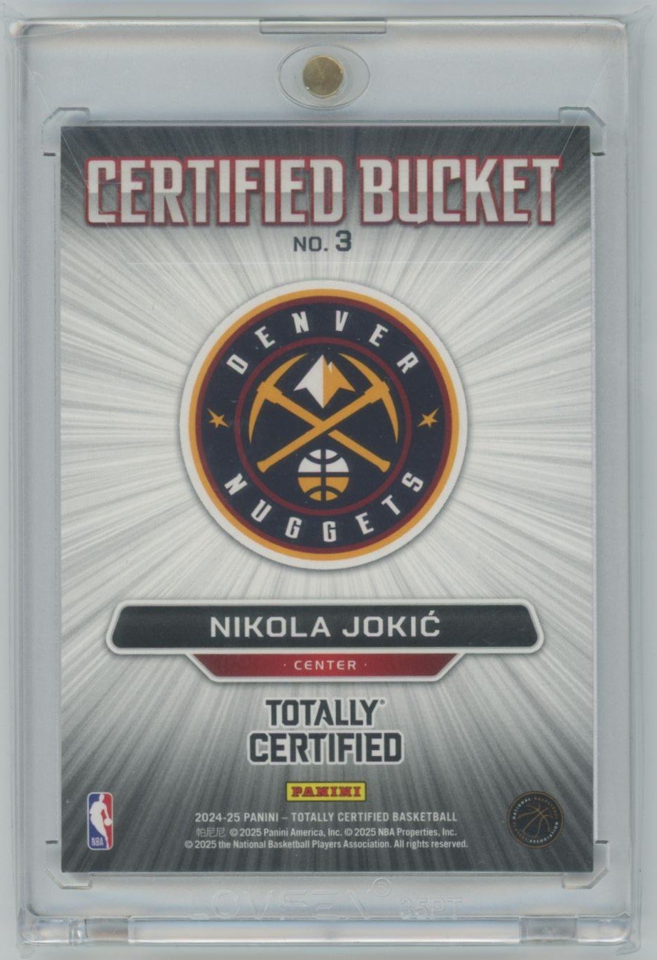 2024 Panini Totally Certified Nikola Jokic 3 card from the Denver Nuggets.