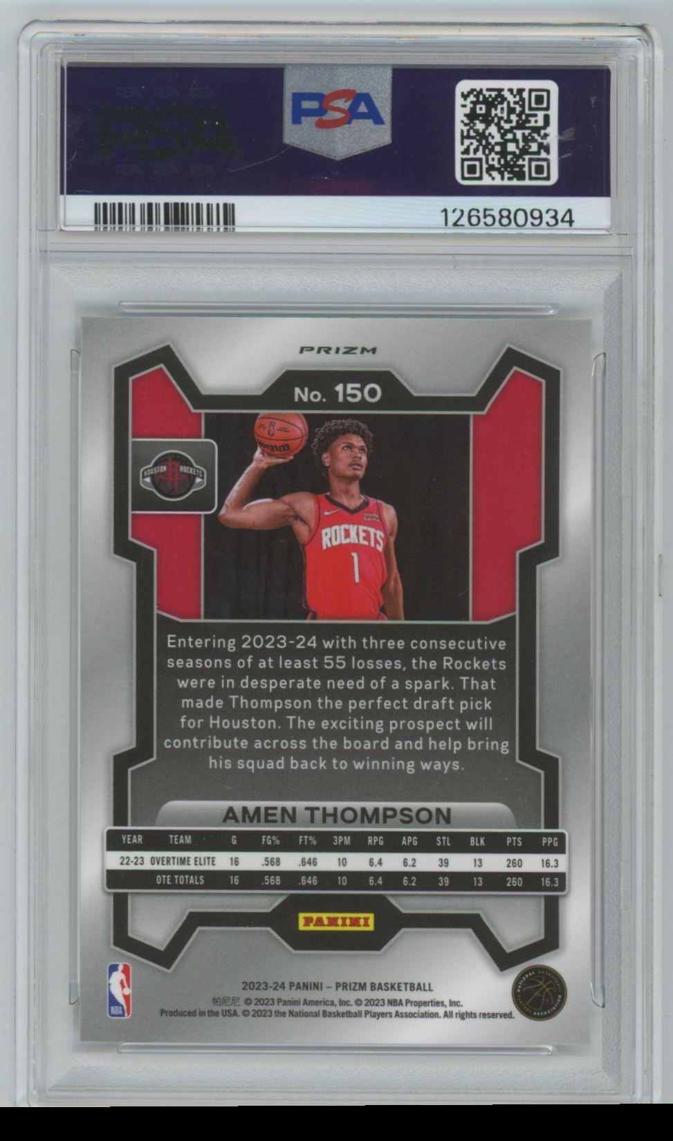 | Product | Amen Thompson | Panini Prizm | Silver | Rookie | 2023 | #150 |PSA 10 | |