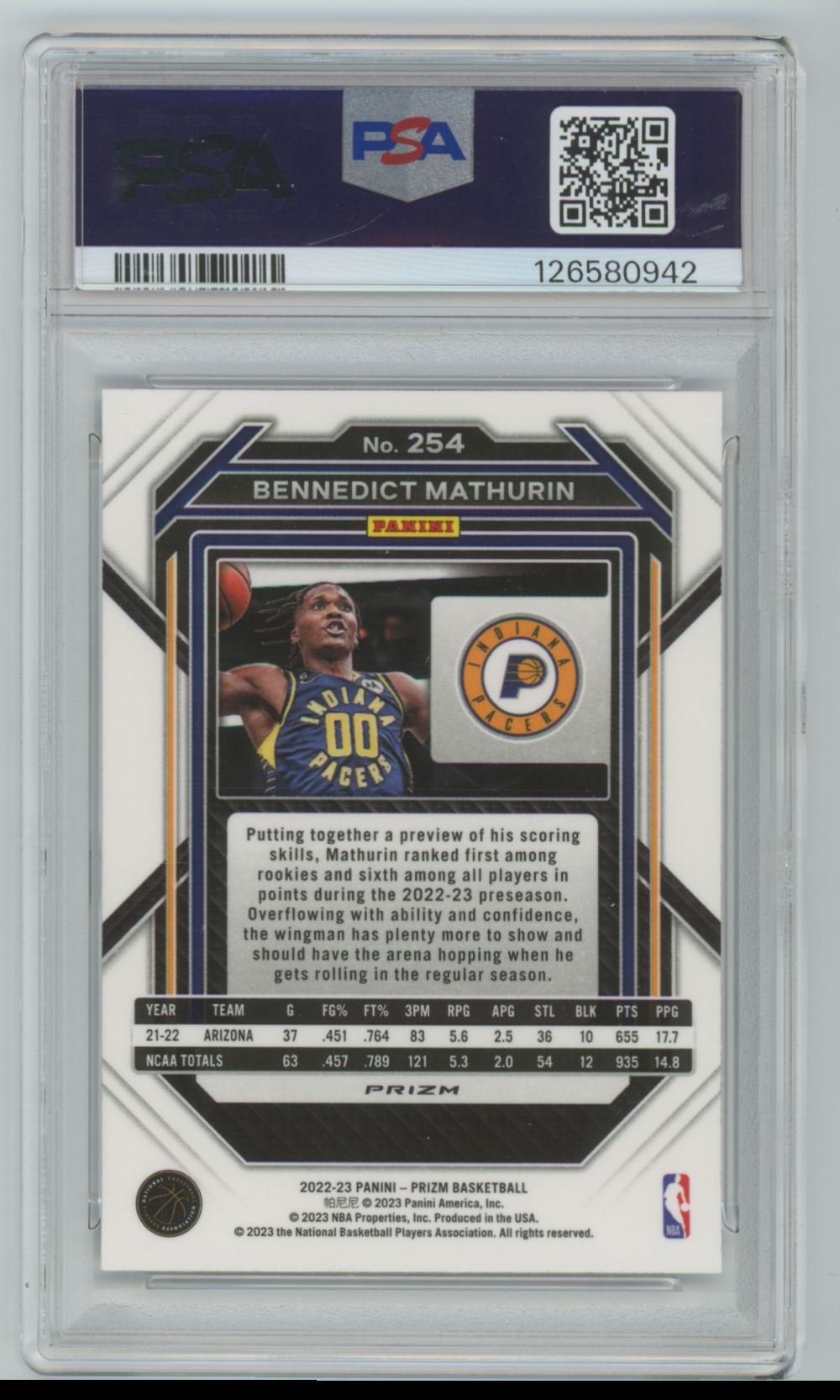 | Product | Bennedict Mathurin | Panini Prizm | Silver | Rookie | 2022 | #254 |PSA 9 | |