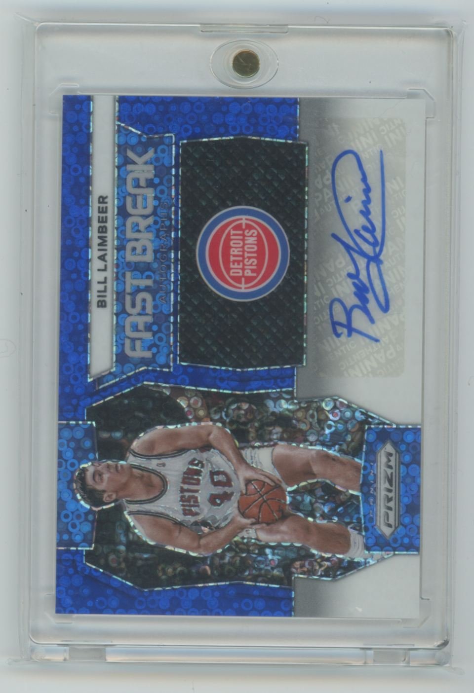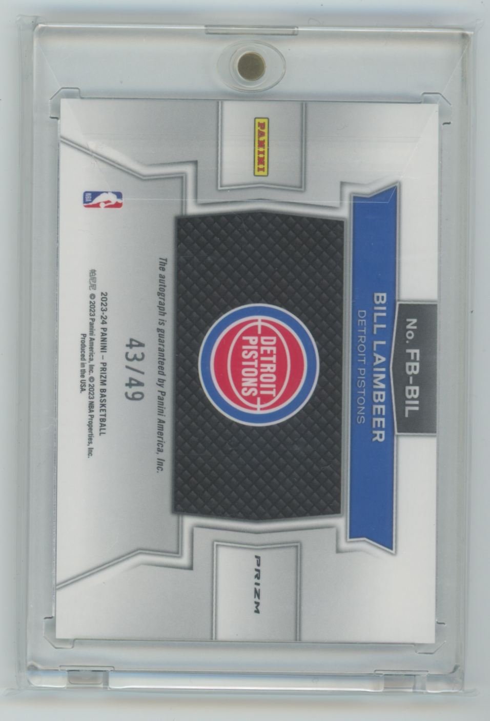 This is a 2023 Bill Laimbeer basketball card #FB-BIL from the Detroit Pistons in the 2023 Panini Prizm set.
