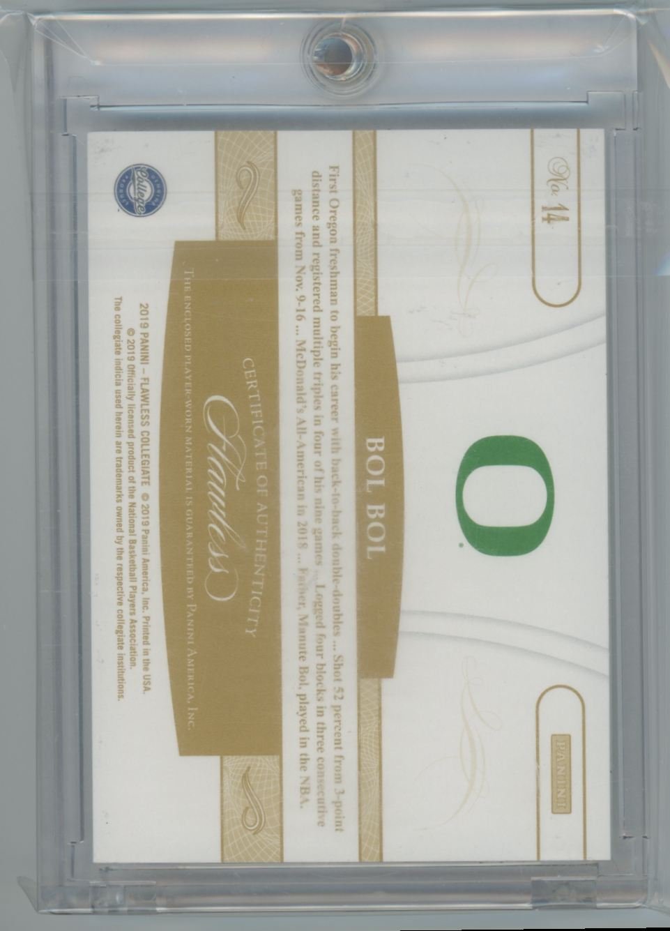 This is a 2019 Bol Bol basketball card #14 from the Oregon Ducks in the 2019 Panini Flawless Collegiate set.