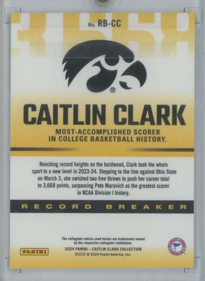This is a 2024 Caitlin Clark basketball card #RB-CC from the Indiana Fever in the 2024 Panini 2024 set.