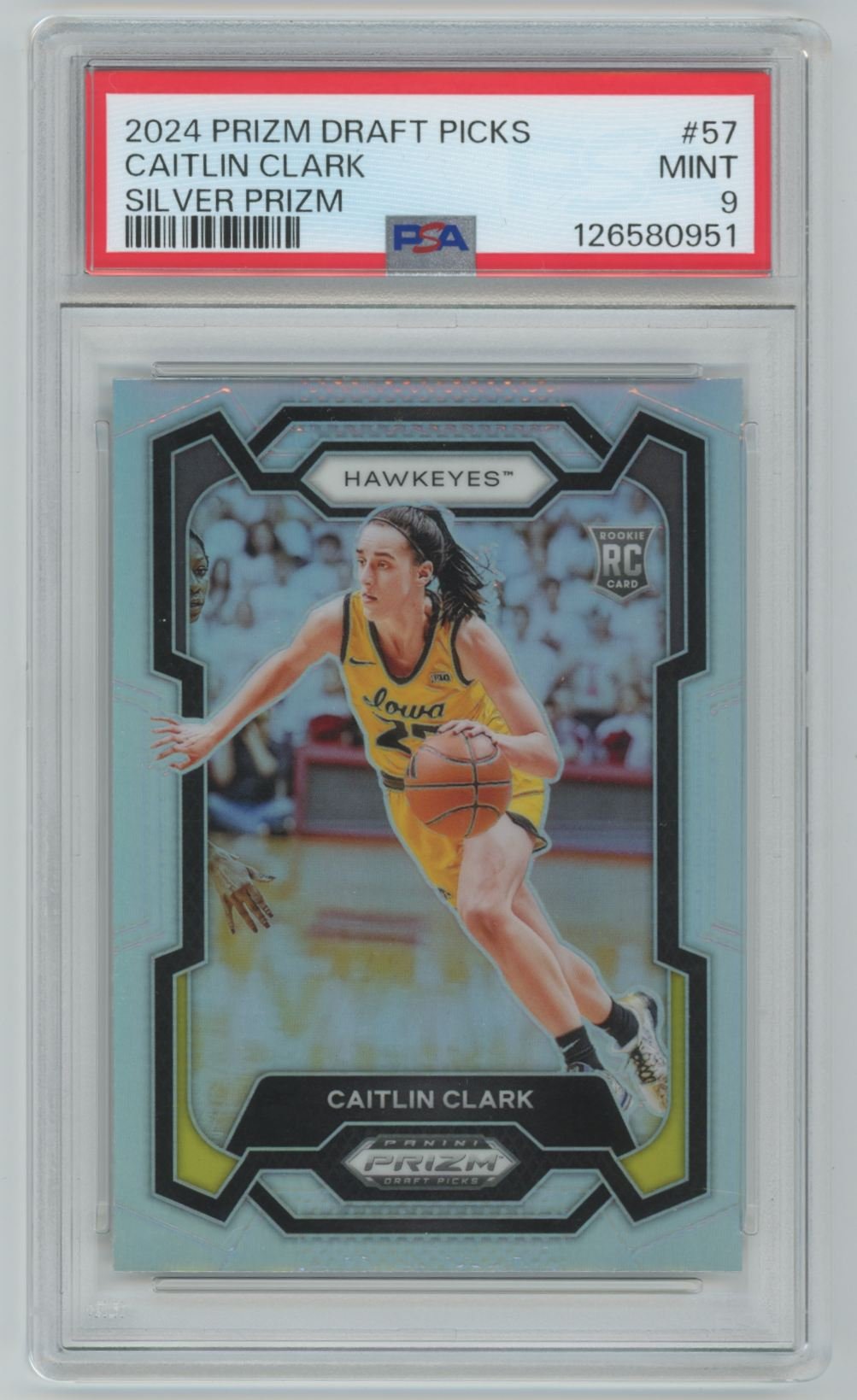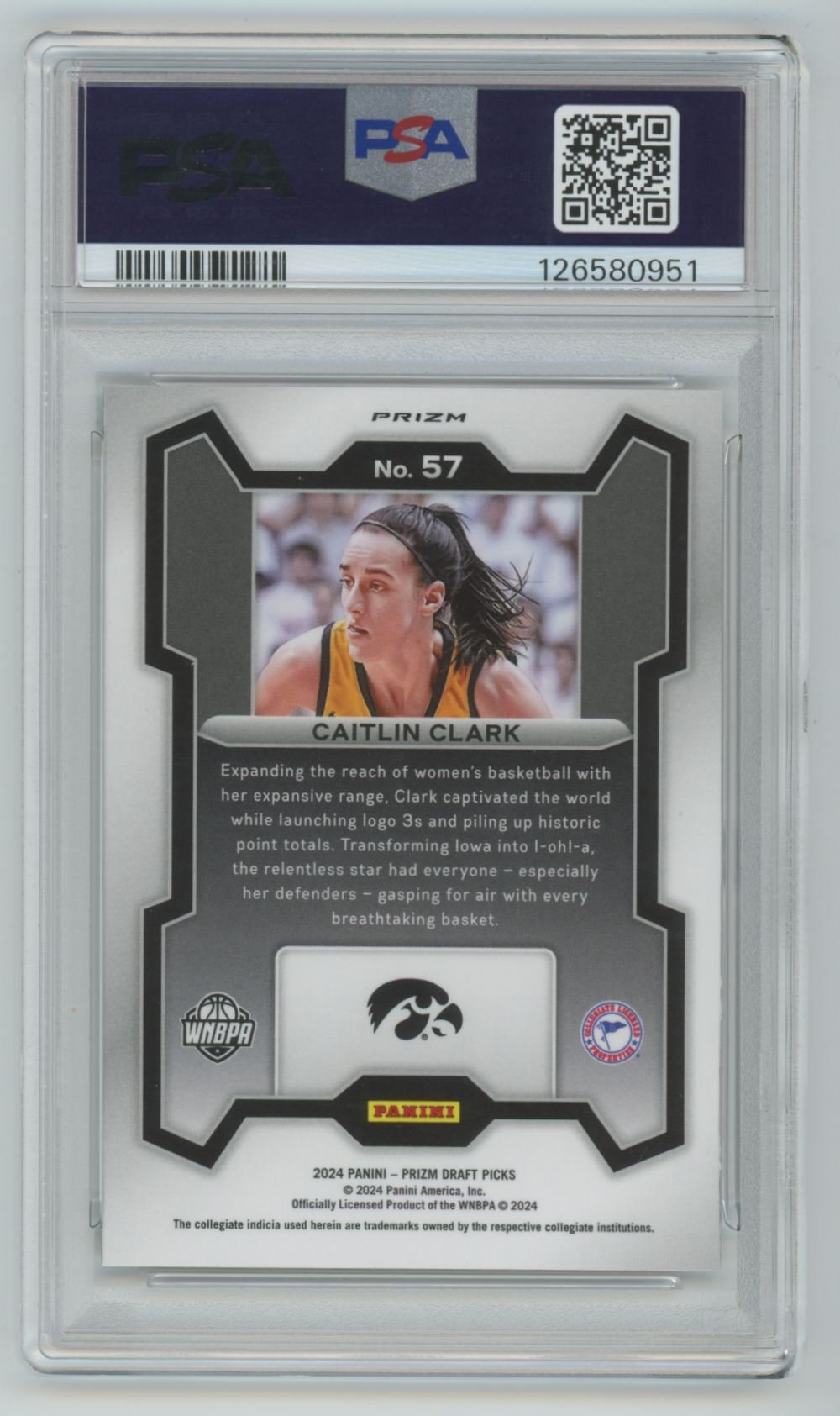 | Product | Caitlin Clark | Panini Prizm Draft Picks | Silver | Rookie | 2024 | #57 |PSA 9 | |