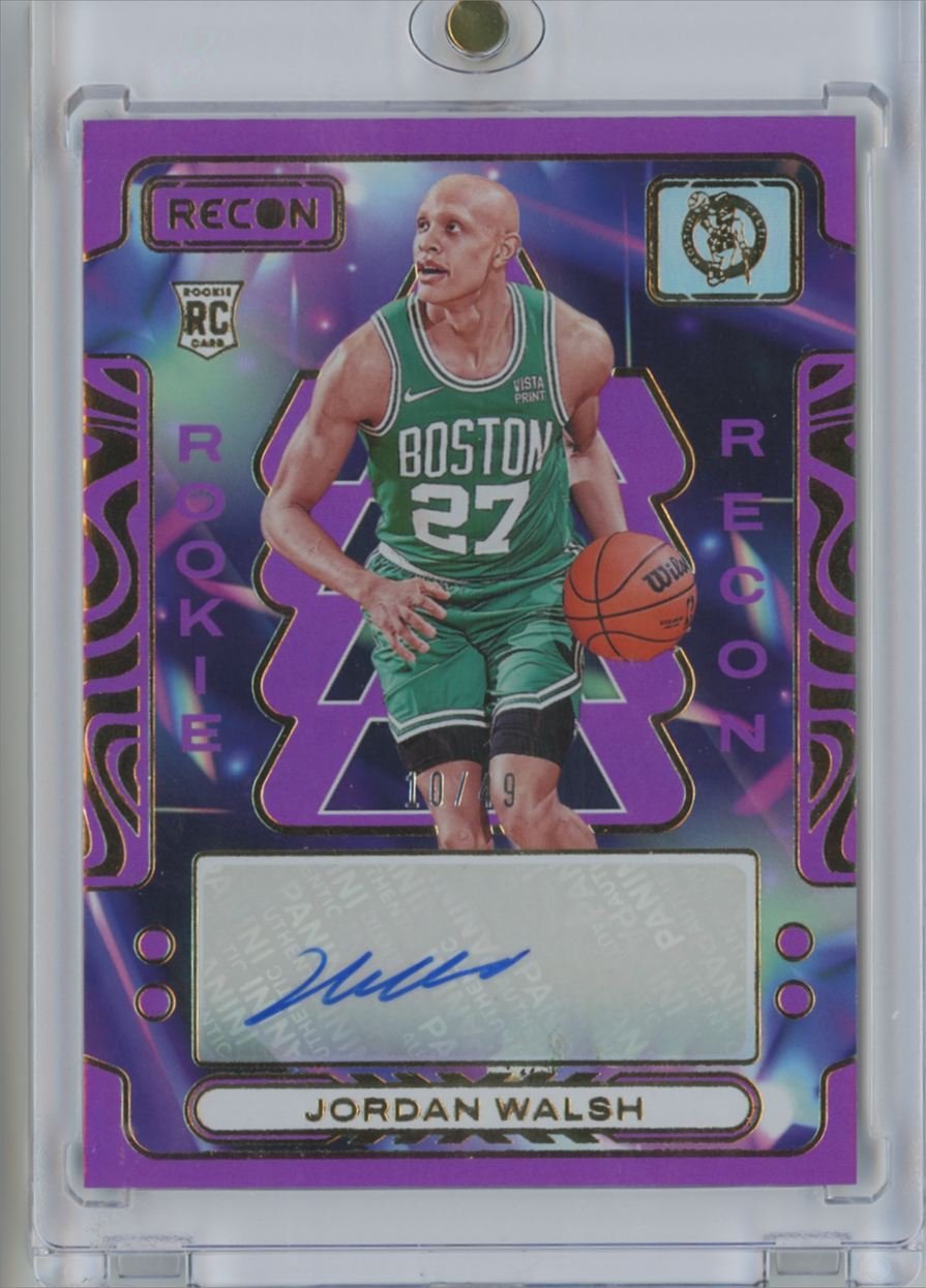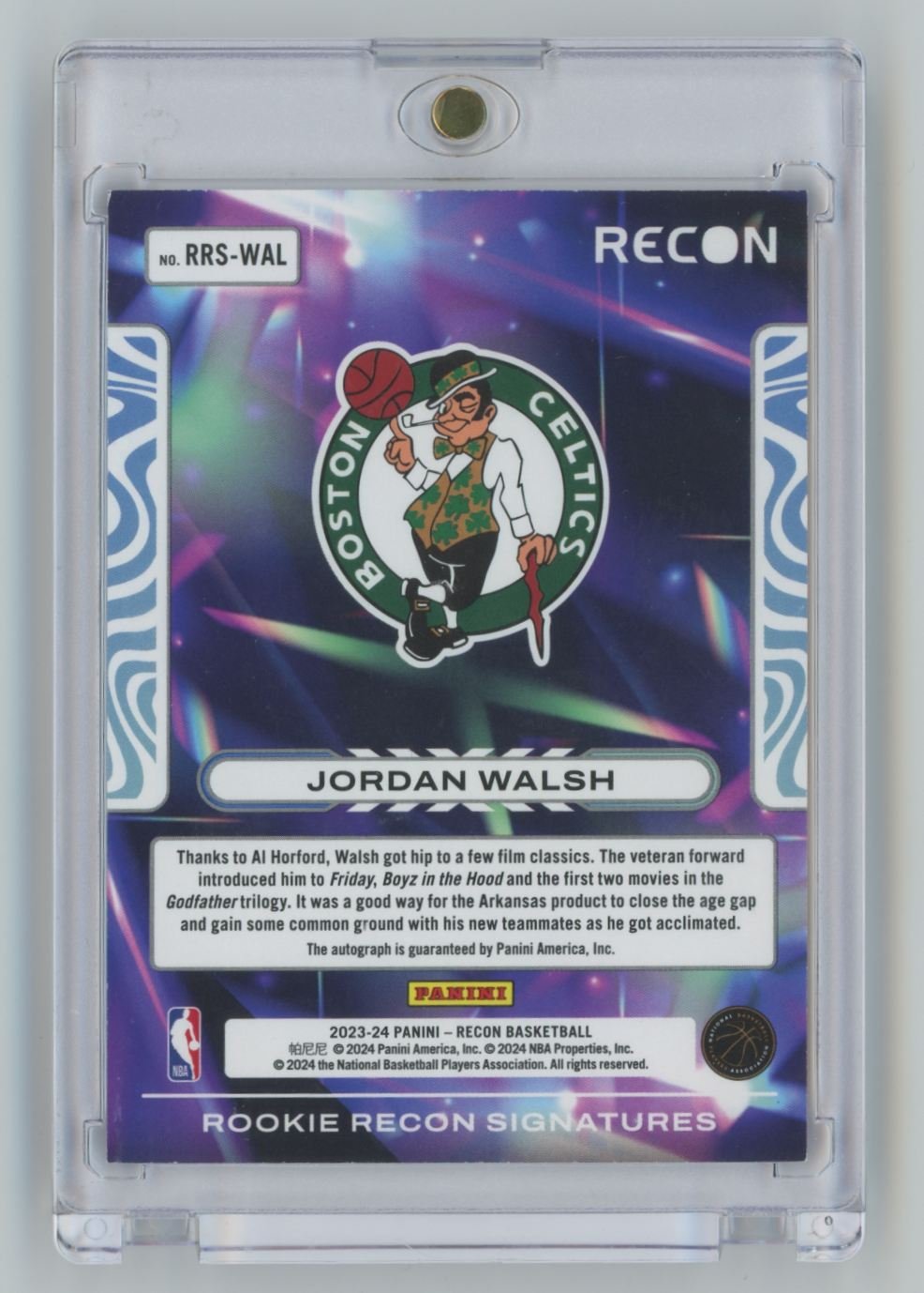 This is a 2023 Jordan Walsh basketball card #RRS-WAL from the Boston Celtics in the 2023 Panini Recon Effect Holo set.