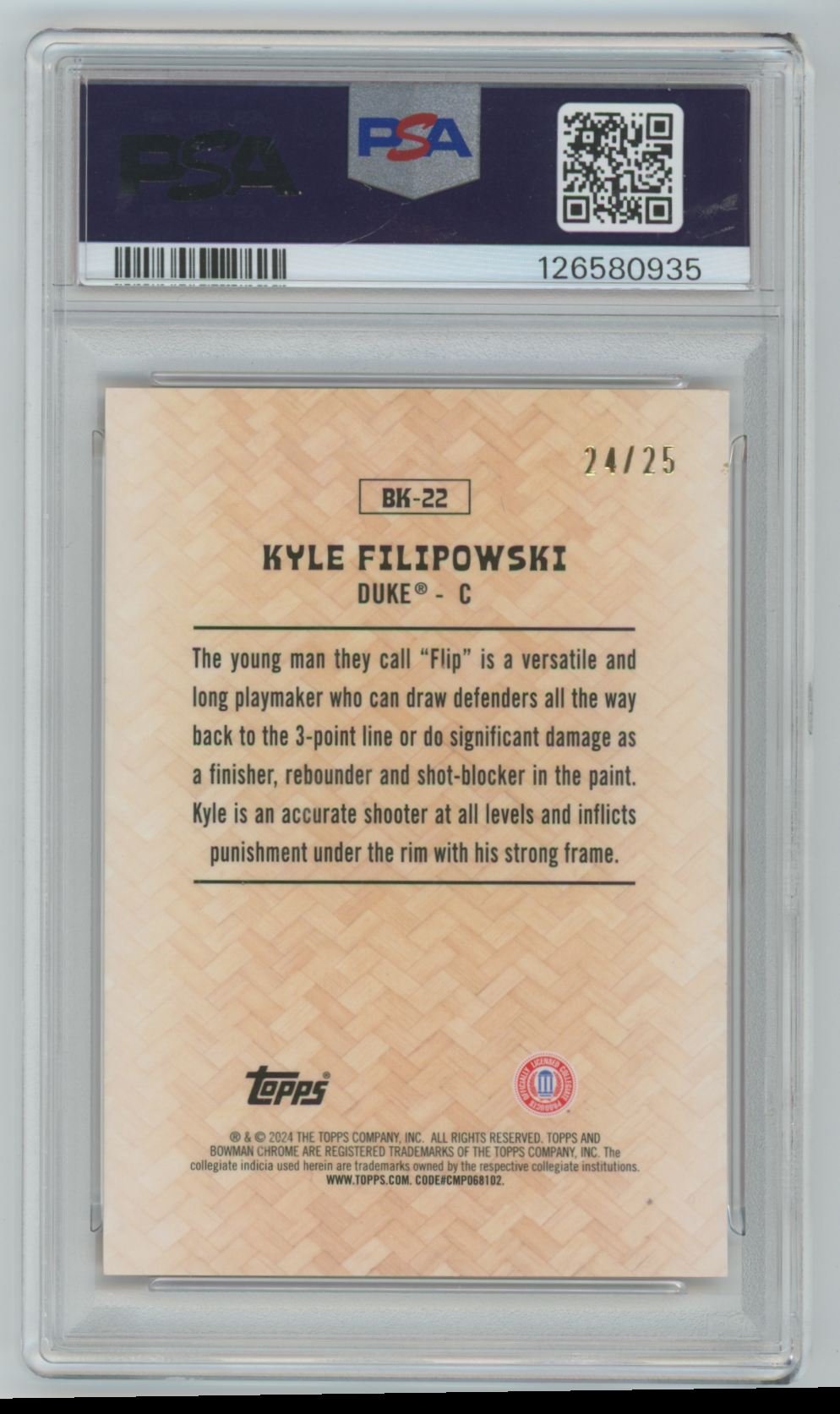 | Product | Kyle Filipowski | Bowman U Chrome | Big Kahuna Organge Ref | 2023 | #BK22 |PSA 10 | 24/25 |