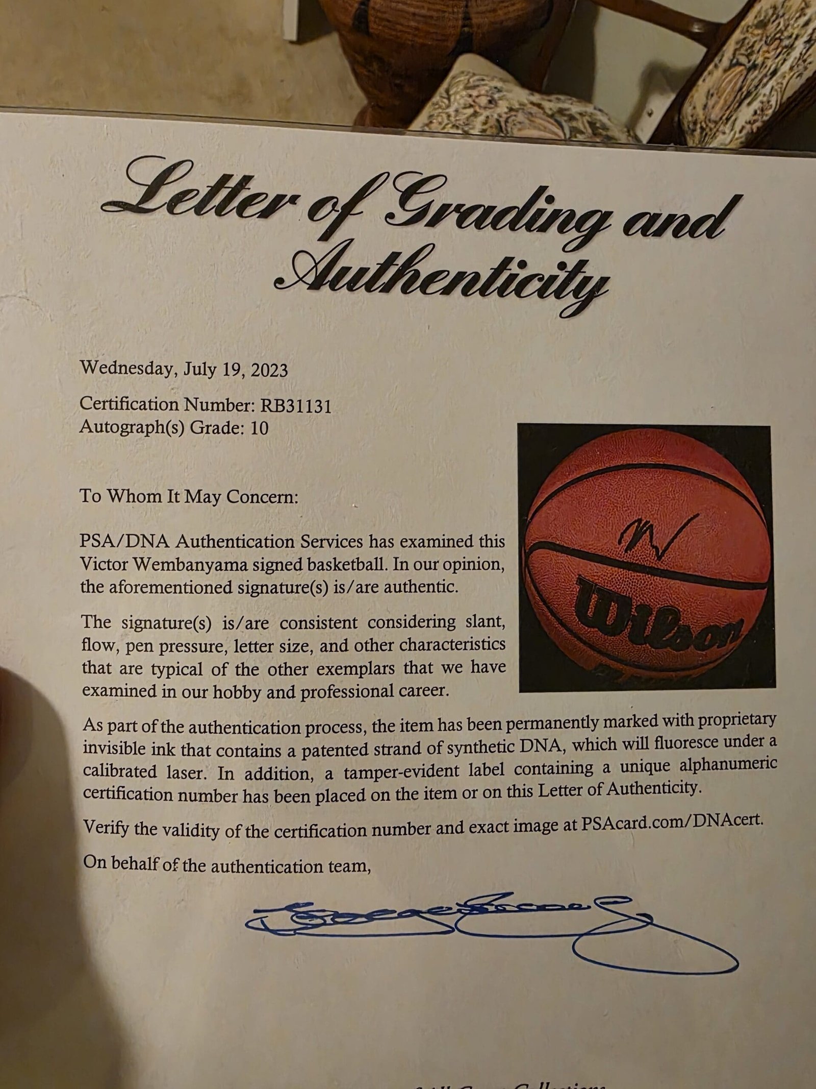 This basketball has been fully authenticated and graded by PSA/DNA Authentication Services, the industry leader trusted by collectors worldwide. Letter of Authenticity and certification number are included.